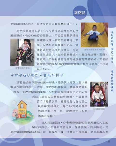 與其說讓韻絜老師頭痛,她看到的是煜鈞的渴望,想要有人可以一直陪 希望看到的是堅強的煜鈞總會露出潔白牙齒說:『我可 ─