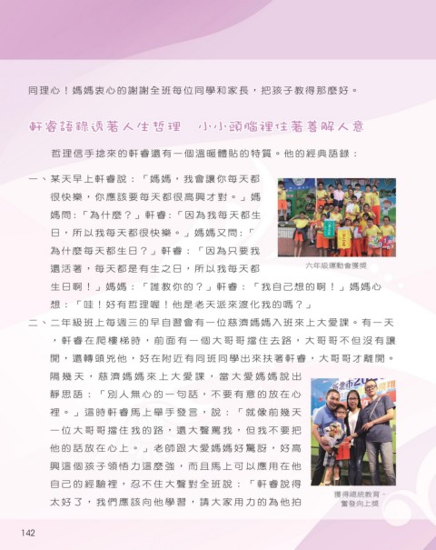 哲理信手捻來的軒睿還有一個溫暖體貼的特質。他的經典語錄: 老師和媽媽非常驚訝,問:「軒睿為什麼