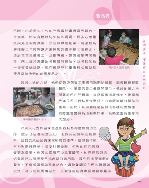 用母親擔心。媽媽說沛辰從小就跟在她身邊耳 透過大姑的介紹,他們從巧連智員工團購西點開始做起,而後轉戰郵政