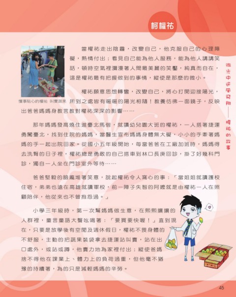 轉 就 醫 , 持 續 治療 中 ; 現 在 高 一 的 他 , 依 這是權祐最有把握做到的事情,縱使是那麼的微小。
