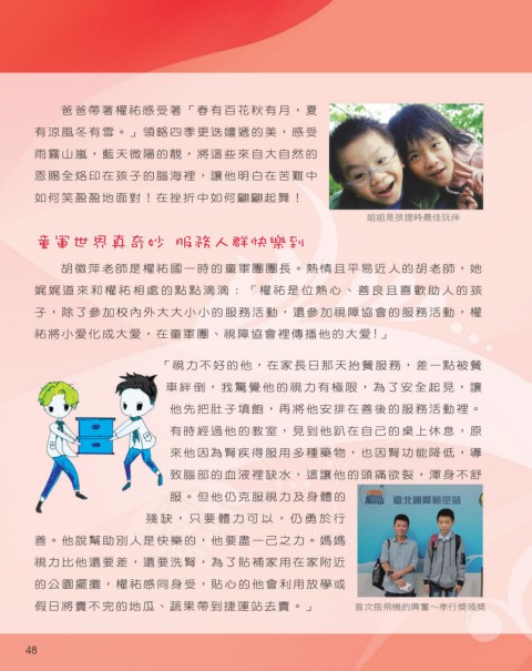 祐將小愛化成大愛,在童軍團、視障協會裡傳播他的大愛!」
