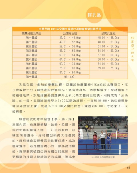 的種種瓶 頸,於是建 議孔晶選擇升 上新北高工 體育班就讀, 同時成為「武 術