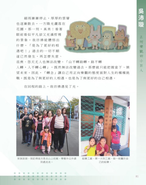 關愛,沛璇還能整天笑臉迎人?為什麼在繁忙的國中課業與生活之 在回程的路上,我彷彿遇見了光。